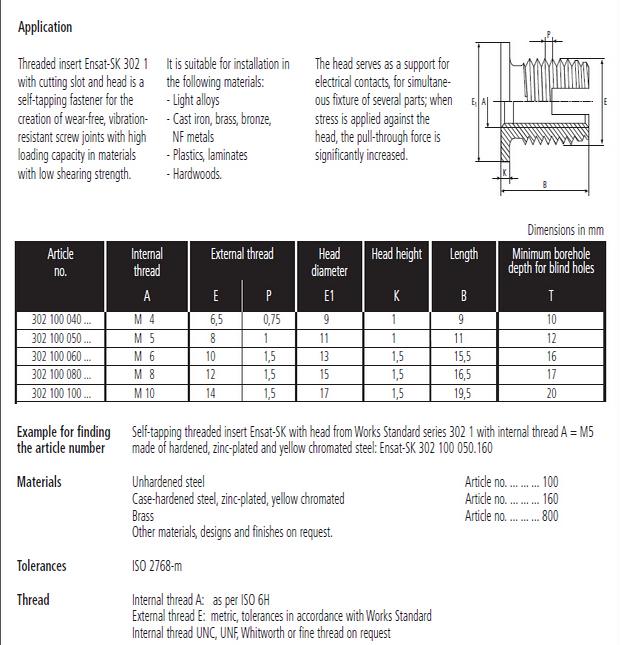 302-1型成都自攻螺套是一种新型的紧固件,使用后能够加强螺纹强度。产品有内外牙,将其嵌入塑料,铝合金,铸铁,铜等较软材料内,形成的内螺纹孔就可以具有较高的强度。